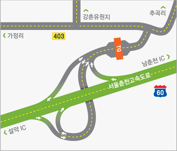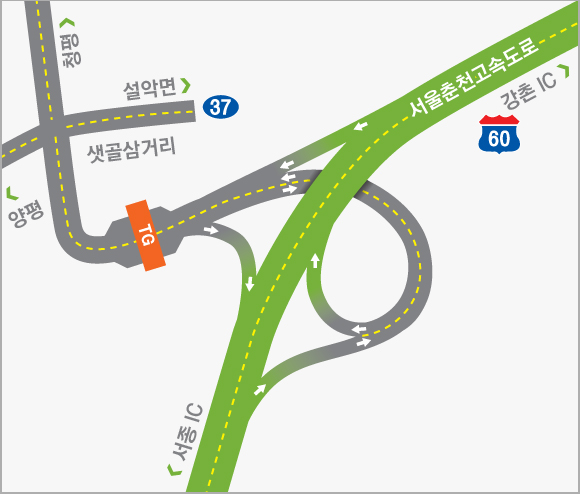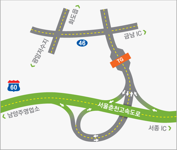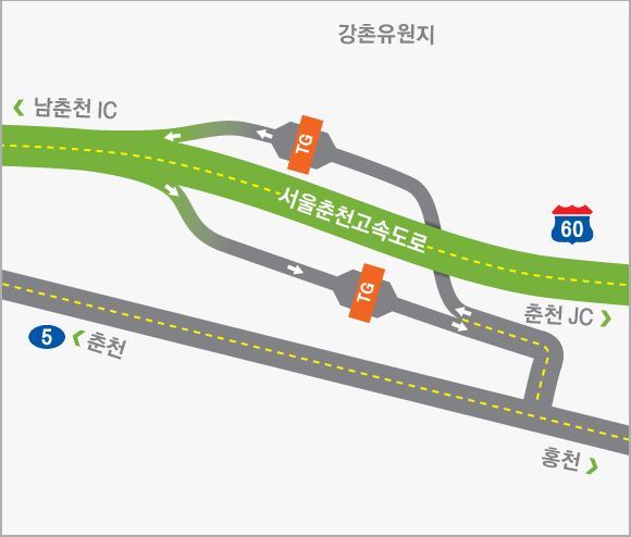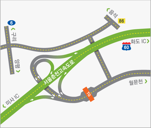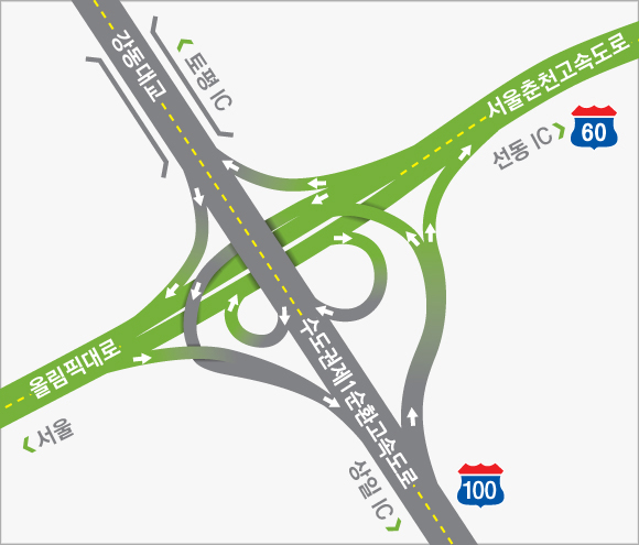 수도권과 강원지역 및 동해안을 연결하는 동서2축 고속도로의 시점부에 해당하는 서울춘천고속도로는 서울시 강동구 강일동과 강원도 춘천시 동산면을 잇는 총 연장 61.4km로 건설되었습니다.수도권과 연계는 물론 중부내륙 및 중앙고속도로와 상호작용이 쉬워져 교통난이 크게 완화될 전망입니다.